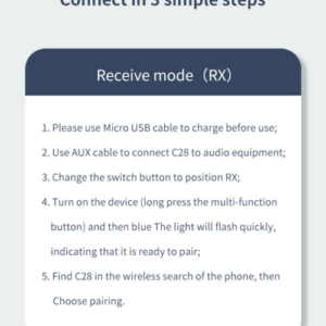 Product model: C28 Bluetooth audio receiving and transmitting combo
