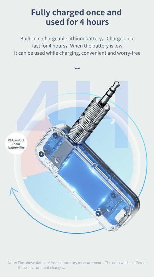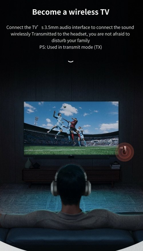 *Connect to the TV’s 3.5mm audio interface, and transmit the sound to the headset via Bluetooth, so you are not afraid to disturb your family when watching movies at night
