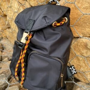 Our Belted Black Backpack will take you from your daily commute to weekend adventures in style. Shiny gold hardware and bright belt accent at the front lend a playful but sophisticated finish, while adjustable shoulder straps ensure easy to wear. A drawstring fastening provides practical storage.