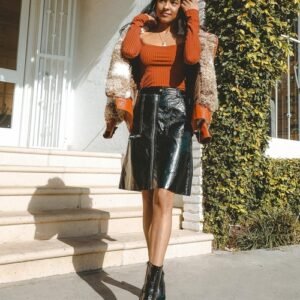 Be the first to review “Bordeaux Faux Leather Zip Up Pencil Skirt”