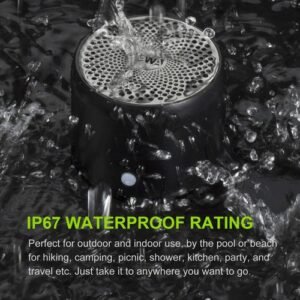 EASY TO CARRY – Weighing 6.2 ounces and measuringΦ1.89*H1.54 inches, along with the speaker, you will get a metal hook and a carrying case which allows you to take your music on the go, and also protect your portable speaker from damage. So it is perfect for outdoors, hiking, beach, dorm room, kitchen, bathroom, boat, golf car and more.
