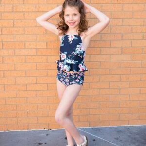 - Navy Floral Peplum Top