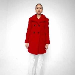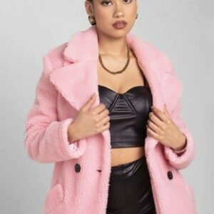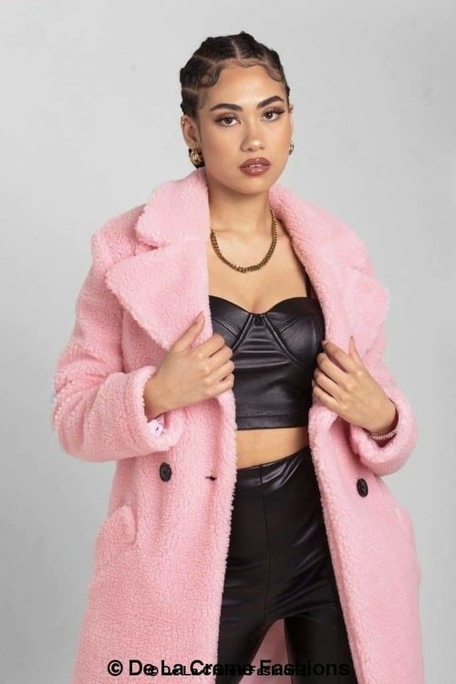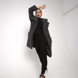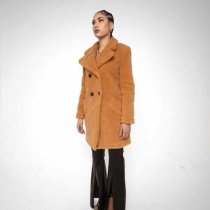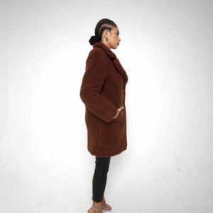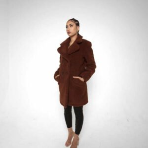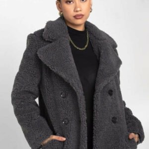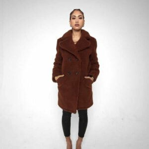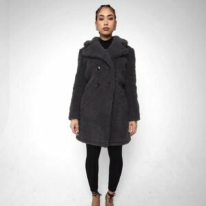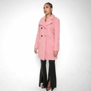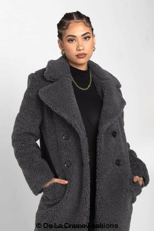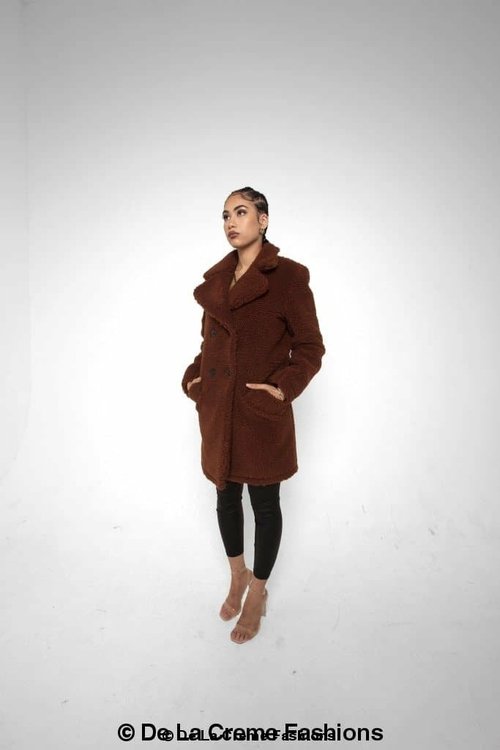 an oversized Double Breasted coat with borg teddy finish.