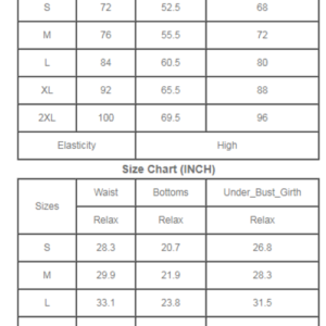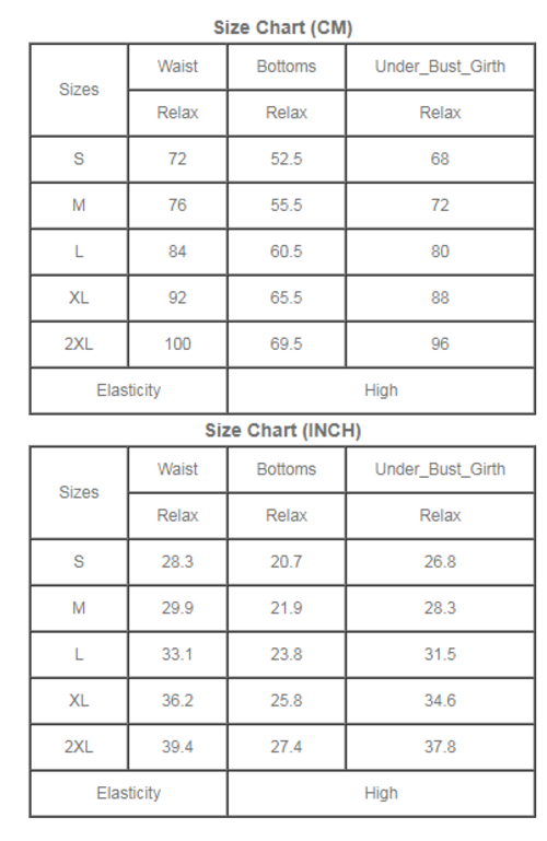 | Sizes | Waist | Bottoms | Under_Bust_Girth |