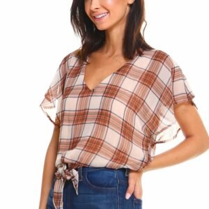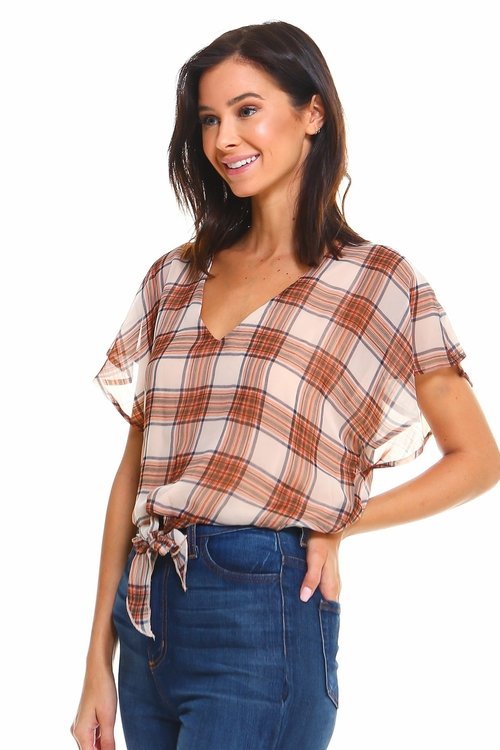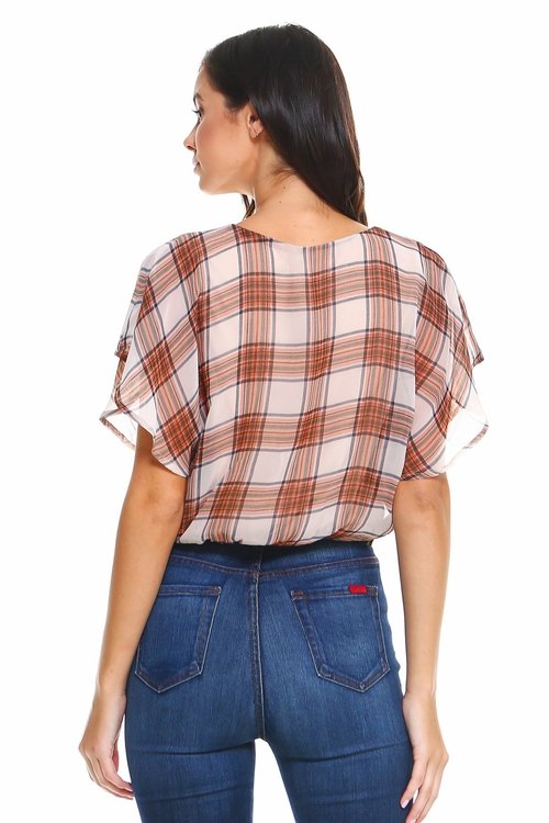 Plaid Tie Back Blouse top