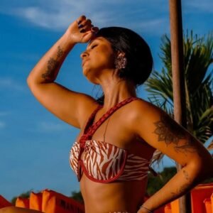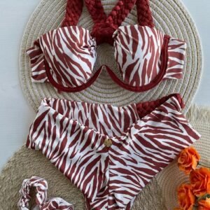 Introducing the Sexikinis Bikini Set, featuring a seductive halter top and low waist bottoms made from high-quality polyester material. The eye-catching zebra pattern adds a touch of wildness to this beach style swimsuit. Enhanced with underwire support and padding for a comfortable fit, this set is perfect for the modern woman who loves to show off her figure. Crafted with intricate weaving techniques, this bikini set is a must-have for the summer of 2024. Make a statement and turn heads with Sexikinis Swimwear. Order now and unleash your inner goddess!
