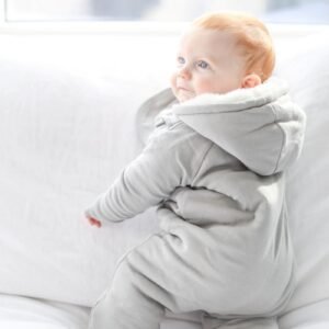 - 100% organic cotton, fleeced lined + slanted zipper for easy on and off
